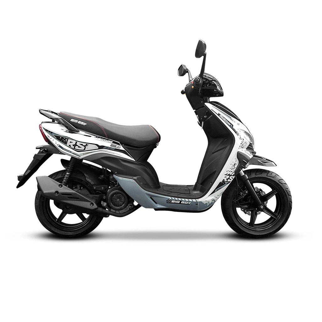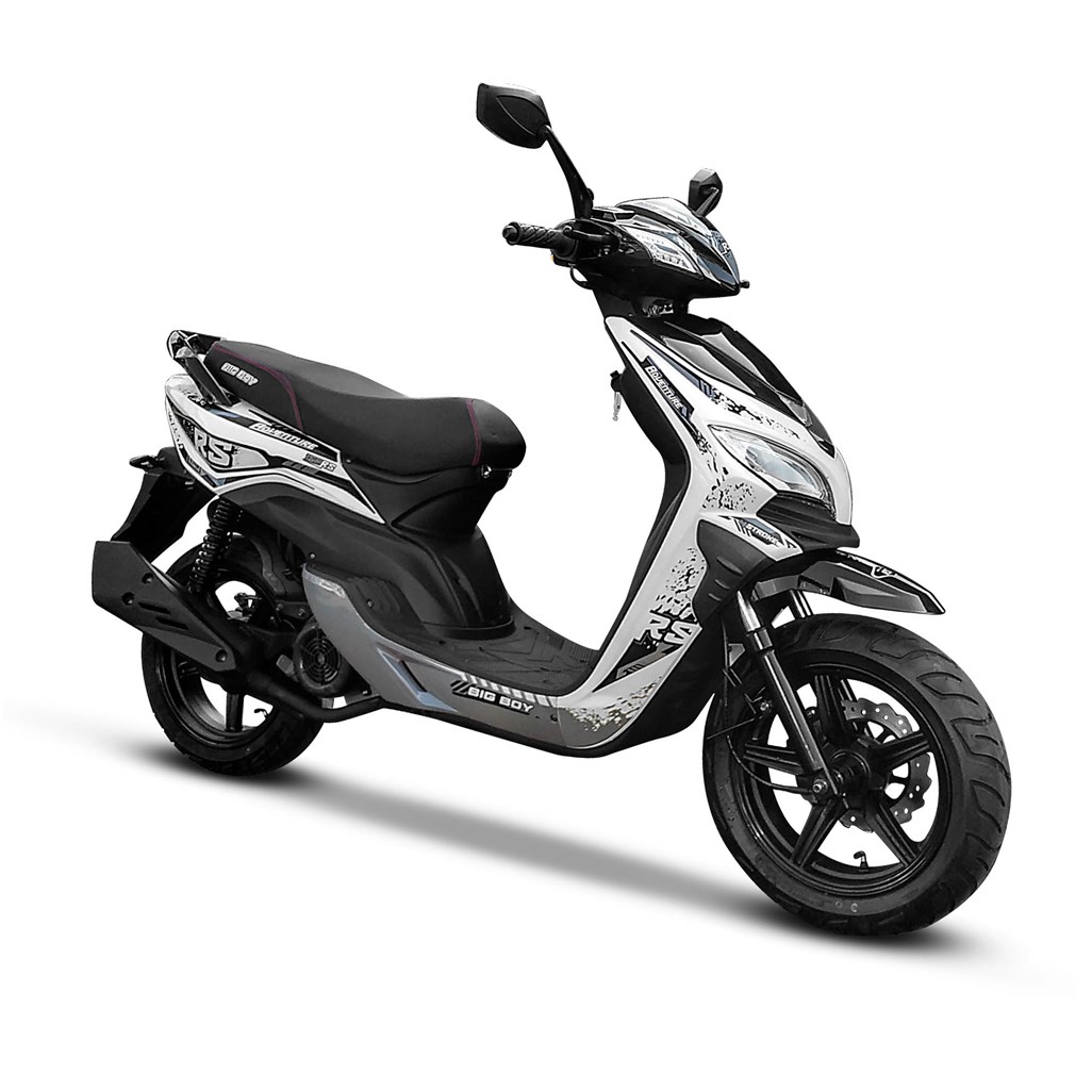 5-spoke black sport rims, twin headlights, rear grab rail, front disc brake, under-seat storage, and more.